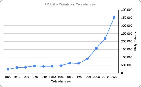 First, consider the quantitative metrics that we use to measure innovation — number of patents, number of publications, and number of journals in a field of study. These have all been climbing up in the last 50 years.