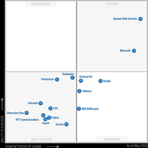 The field of public cloud computing was beginning to establish itself as a major disruption to how computing was done. AWS had been launched back in 2006 and had established itself firmly as the front-runner. Microsoft Azure was a more recent entrant to the field, in 2010, and had set itself up in the second spot. The global market was at $60B — in 2025, it is estimated to be $980B, thus having a CAGR of 29%. Apart from the top two, the other major players were IBM (SoftLayer), Google, Rackspace, and VMWare — of these, only Google survives.
